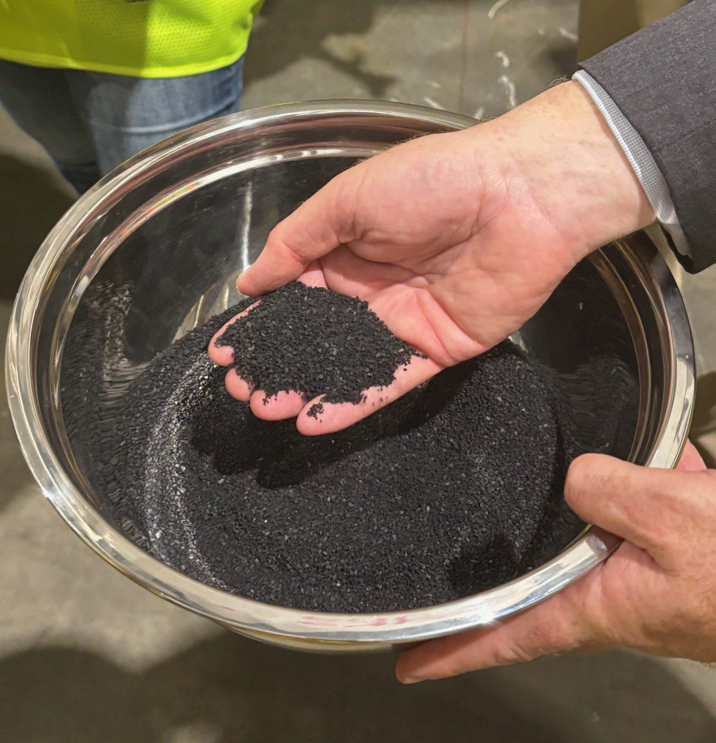 In a tour of the new facility, Mid-Atlantic Regional President of North America at Veolia Larry Finnicum described how the regulation hockey rink-sized facility removes PFAS via a pressurization treatment. Granular activated carbon — manufactured by the Calgon Carbon Corporation (Figure 2) — is currently employed to extract PFAS before water is sent out to distribution centers. Filters are backwashed to clean the media in each of the 42 filtration vessels, which altogether hold 1.6 million pounds of activated carbon. Finnicum added that Veolia is currently investigating options to regenerate the carbon at an external facility or dispose of it in an environmentally friendly way.