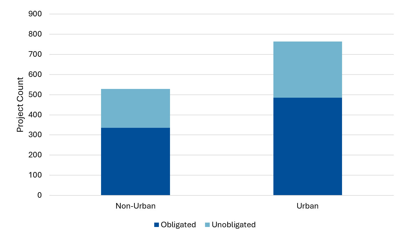 BRIC projects serve both urban and non-urban communities. While most of the unobligated projects are in urban areas (279), many are serving non-urban communities (193) or are operating across multiple counties (240) (Figure 3).