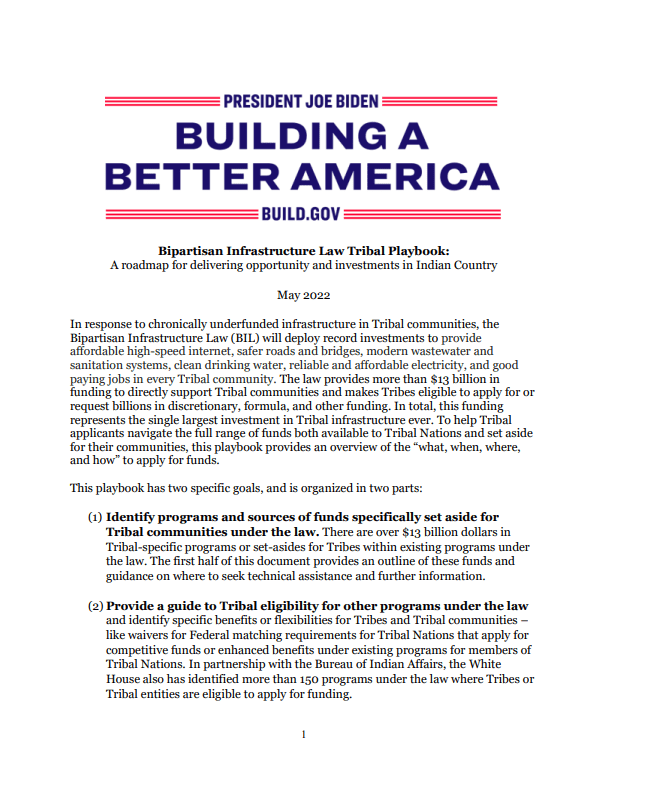 Bipartisan Infrastructure Law Tribal Playbook Bipartisan Infrastructure Law Tribal Playbook Nick Nigro2025-02-03T12:07:21-08:00 Bipartisan Infrastructure Law Tribal PlaybookNick Nigro2025-02-03T12:07:21-08:00